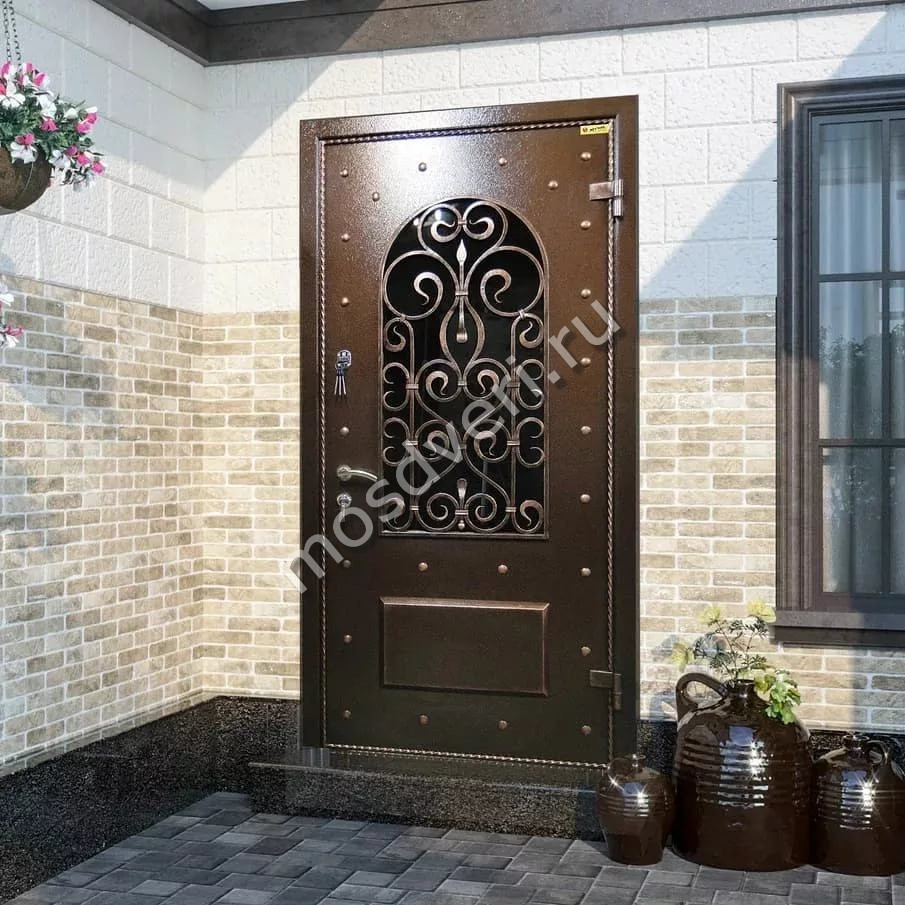 Входные двери со стеклом и ковкой в Майской